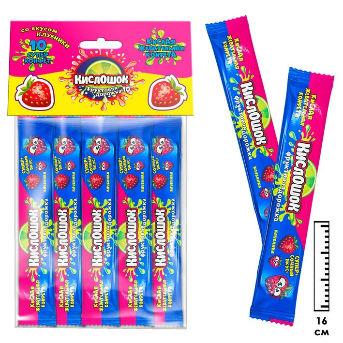 Кислая жевательная конфета Кислошок - фруктовая дорожка 10 со вкусом клубники (Россия) 120г61,33 руб. за штуку (в упак. 36 шт.) |