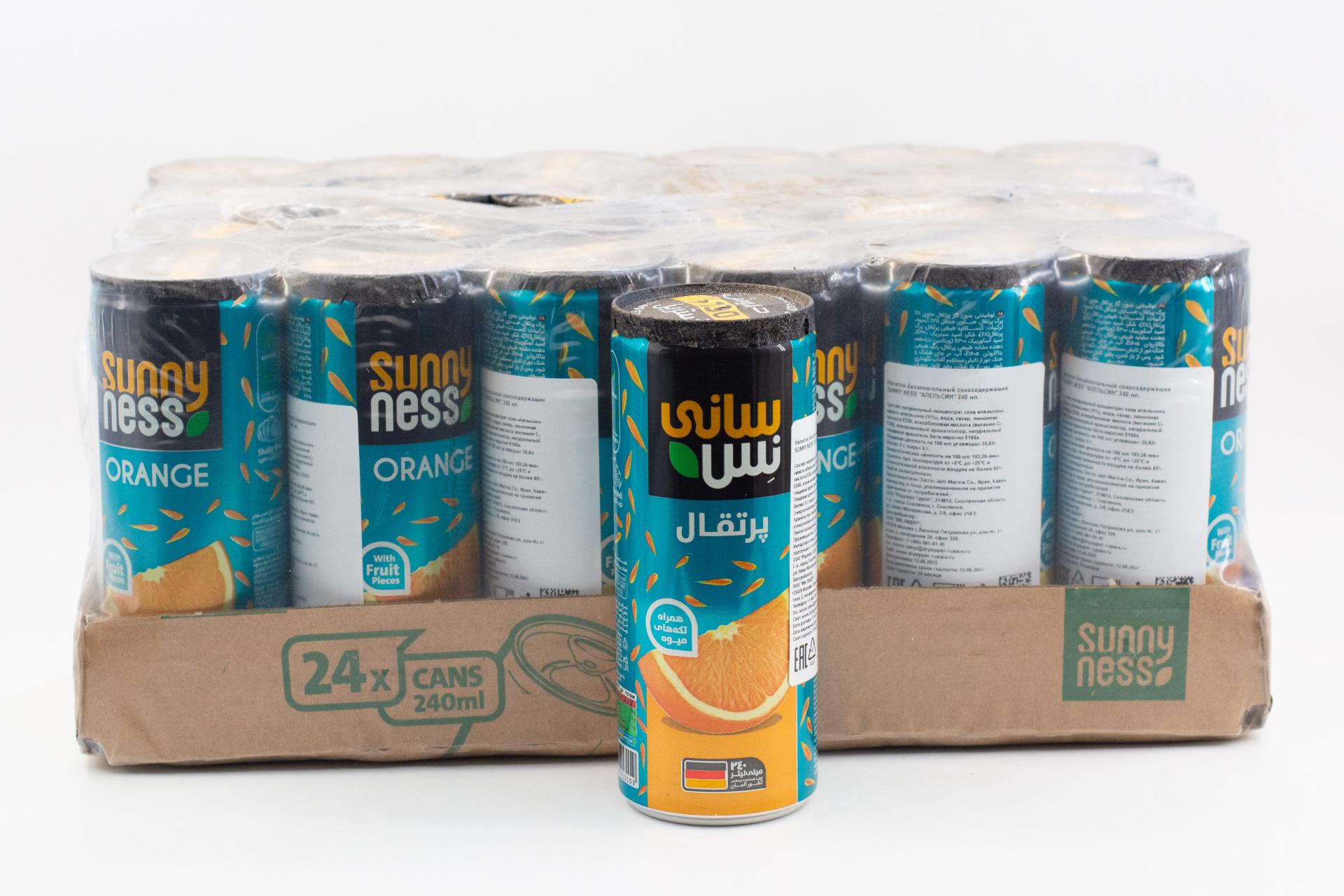 Напиток безалкогольный сокосодержащий Sunny Ness Апельсин (Иран) 240мл ж/б49,90 руб. за штуку (в упак. 24 шт.) |